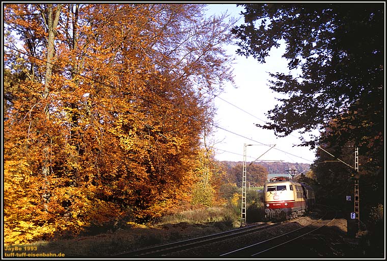 Diesen Baum kennen wir sowohl aus der Ostercappeln Galerie sowie der bunten Galerie. Als Anhaltspunkt soll der alte Fernsprechkasten dienen. Der Hang am rechten Bildrand ist im Oktober 1993 noch völlig bewaldet.