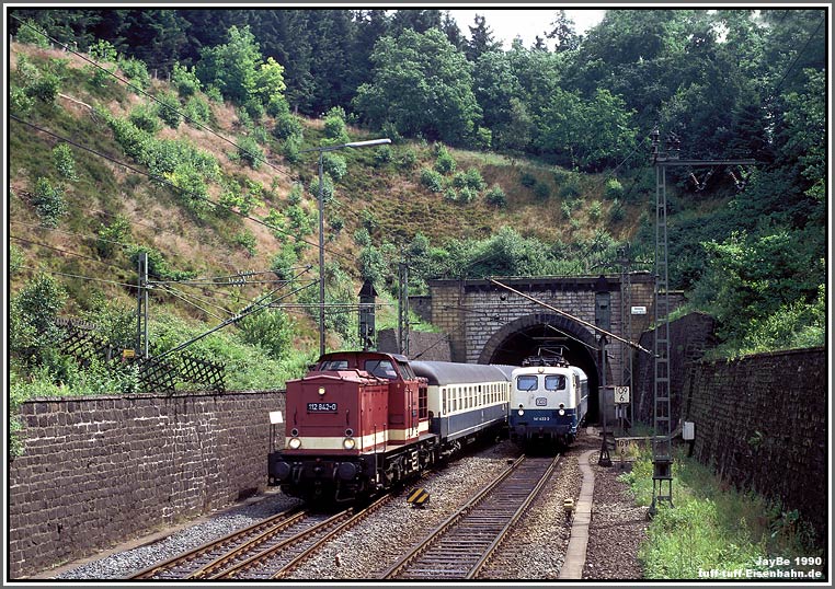Doppelausfahrt aus dem Altenbekener Rehberg Tunnel. 112 842 kommt aus Nordhausen, 141 433 aus Hannover