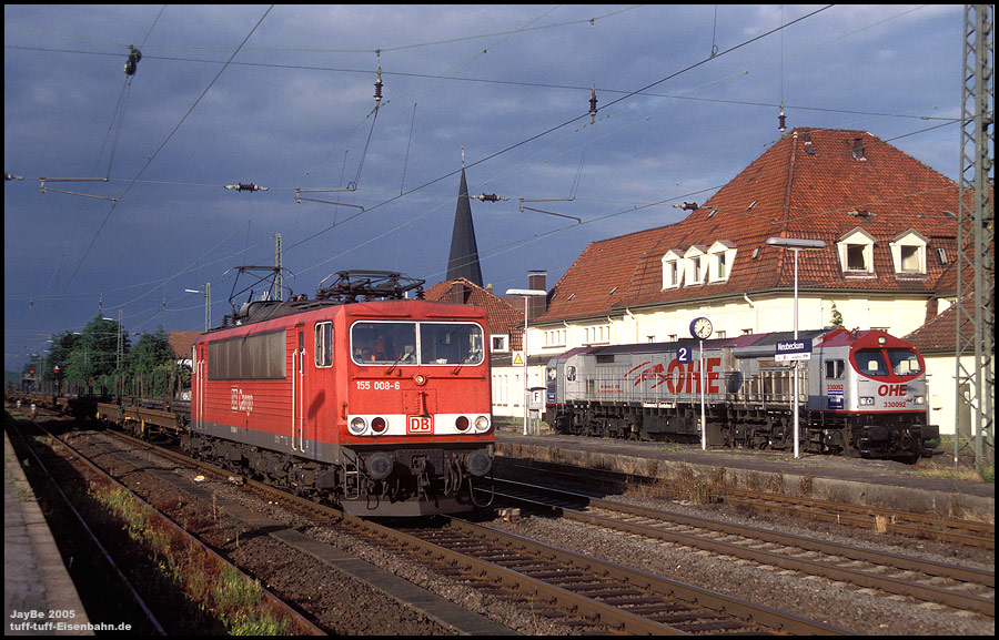 "Diesen Zug schickt der Himmel" waren die Worte des Mitfotografen in Neubeckum. Den ganzen 7.Juli 2005 war es bedeckt, abends riss es für diesen einen Zug auf, bevor eine vaganbundierende Schleierwolkendecke den Tag beendete.