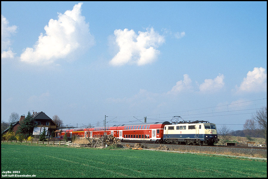 Die ersten richtigen Quellwolken des Jahre 2003 habe ich hier in Rinkerode mit der letzten kotzfarbenen 111 verewigen können.